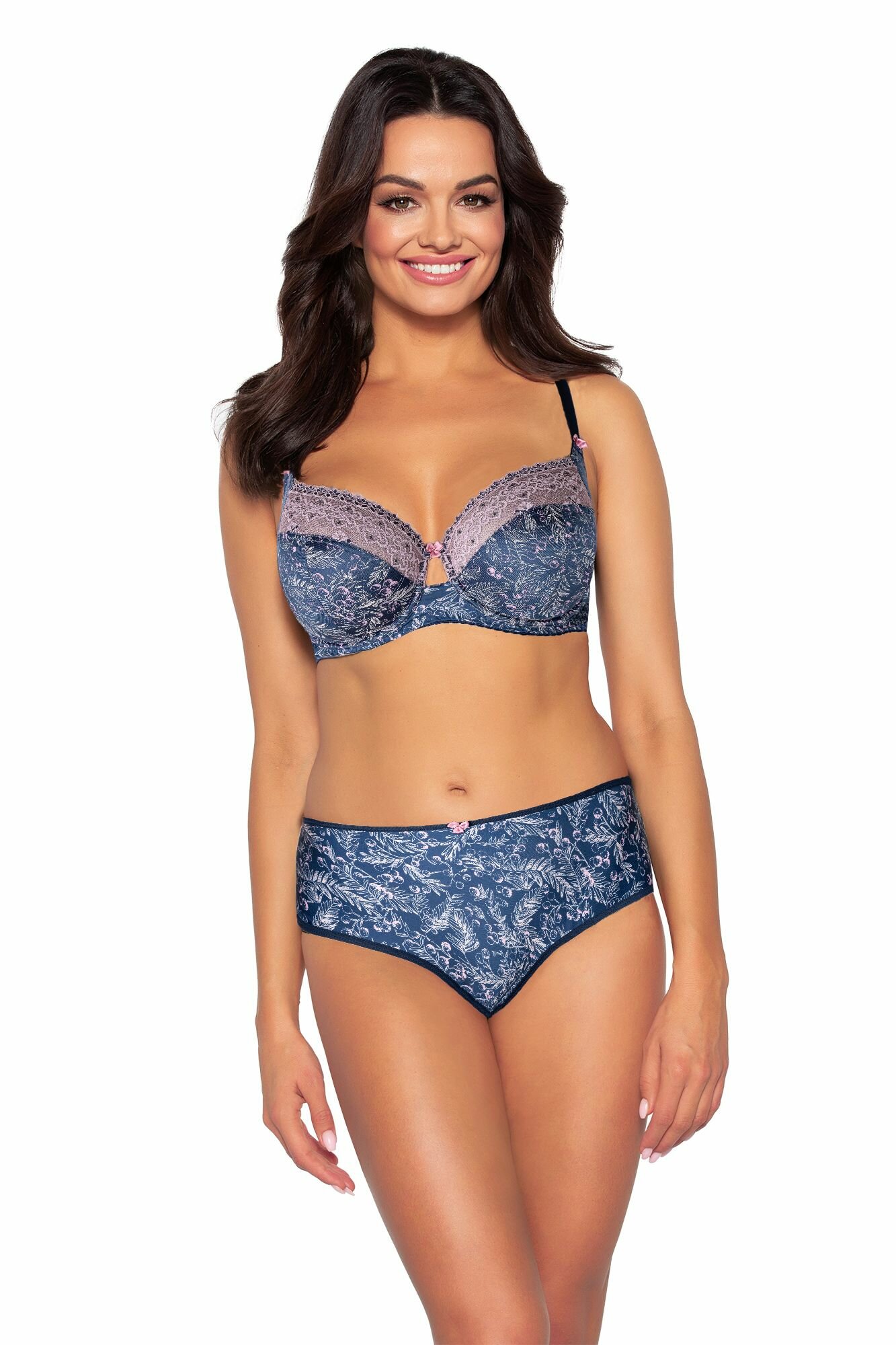 Бюстгальтер с мягкой чашкой из трикотажа с растительным рисунком (Размер: 75E) (Цвет: темно-синий) 4 409 ₽