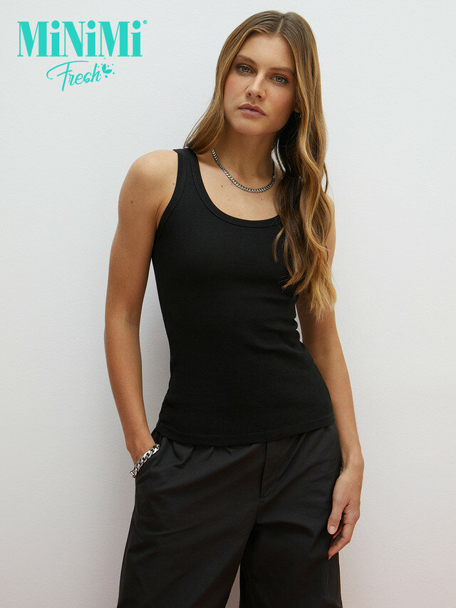 Майка женская MiNiMi BMi_F 1321_01CE топ в рубчик, хлопок, повседневная, цвет Nero (SOF 124) 48 (L) информация: