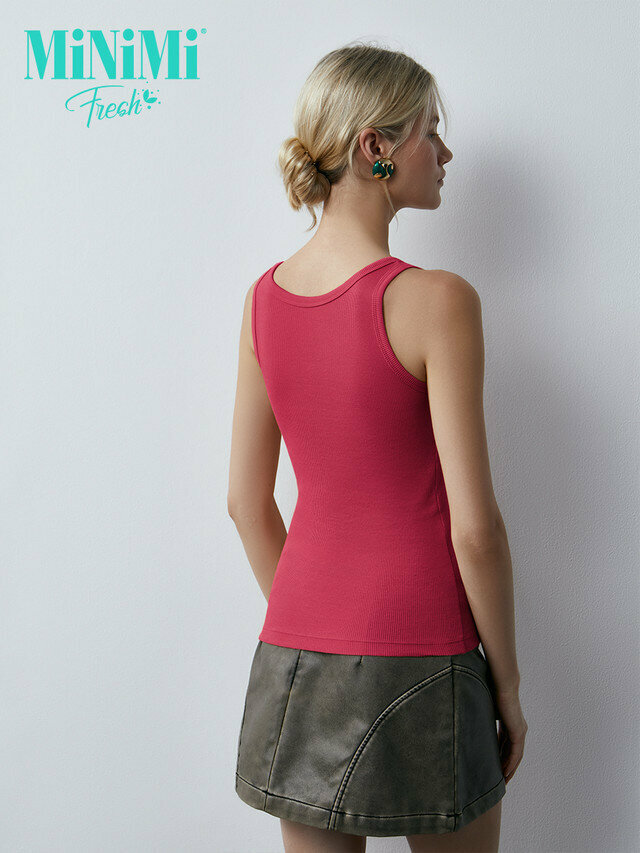 Майка женская MiNiMi BMi_F 1321_01CE топ в рубчик, хлопок, повседневная, цвет Lampone 44 (S) информация: