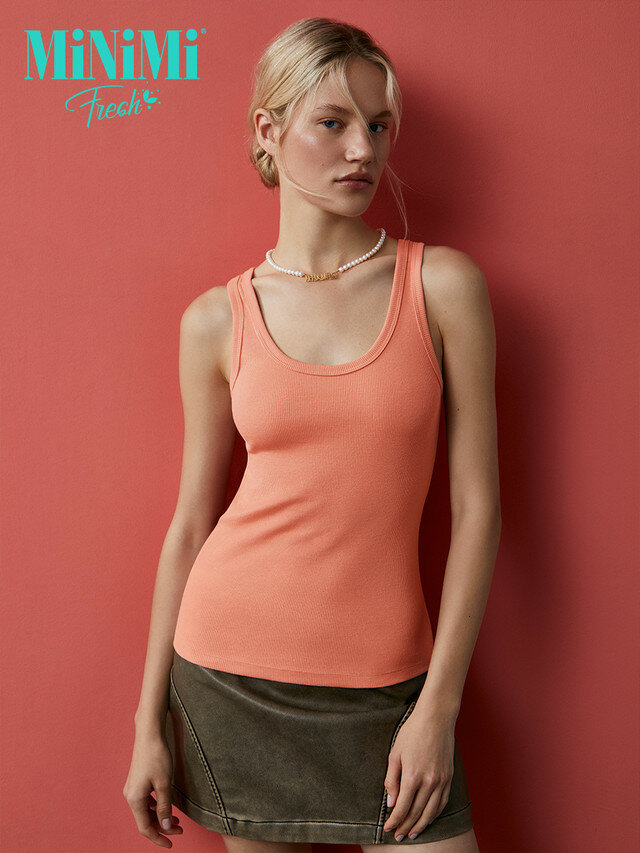 Майка женская MiNiMi BMi_F 1321_01CE топ в рубчик, хлопок, повседневная, цвет Pesca, размер 44/S 749 ₽