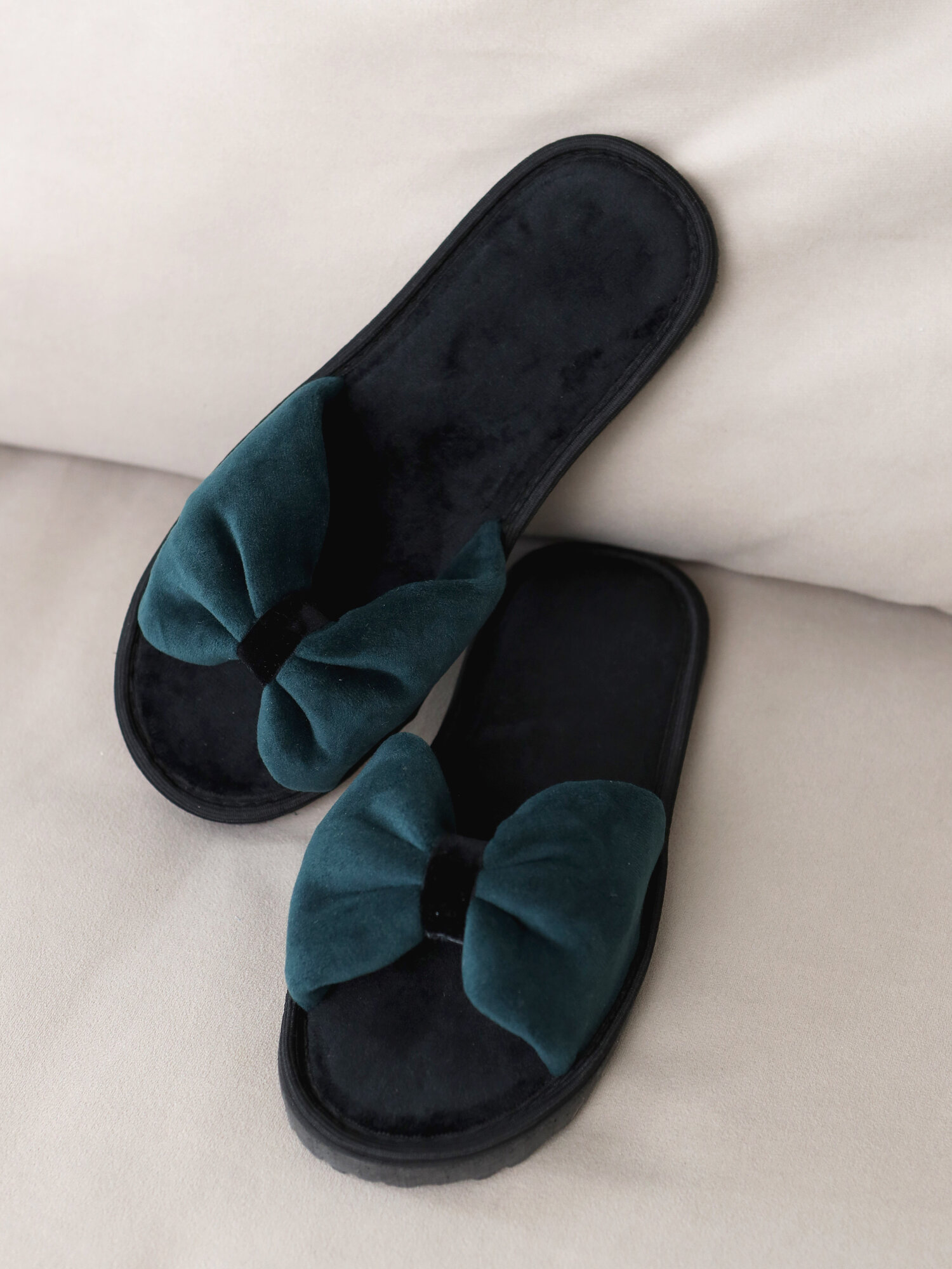 Тапочки ALBERY тапочки женские/тапочки для дома/велюровые тапочки/тапочки с бантом/домашние тапочки/мягкие женские тапочки/комнатные тапочки/домашняя обувь, размер 40-41, темно-зеленый 509 ₽