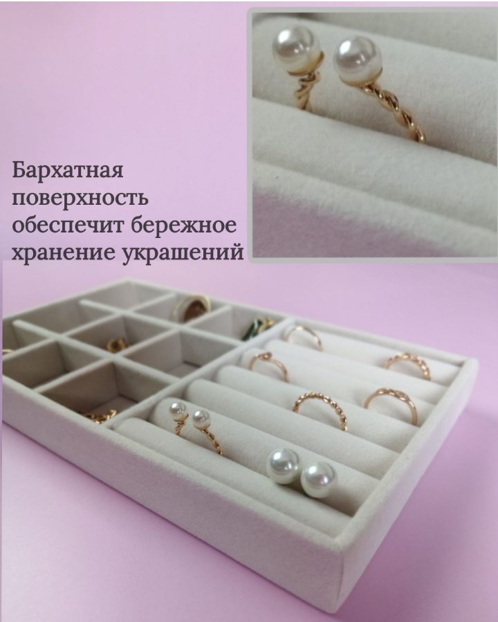 Отзывы на Органайзер для украшений/ Держатель для колец, сережек/ Подставка для бижутерии 21х12,5х2,5см Светло-бежевый