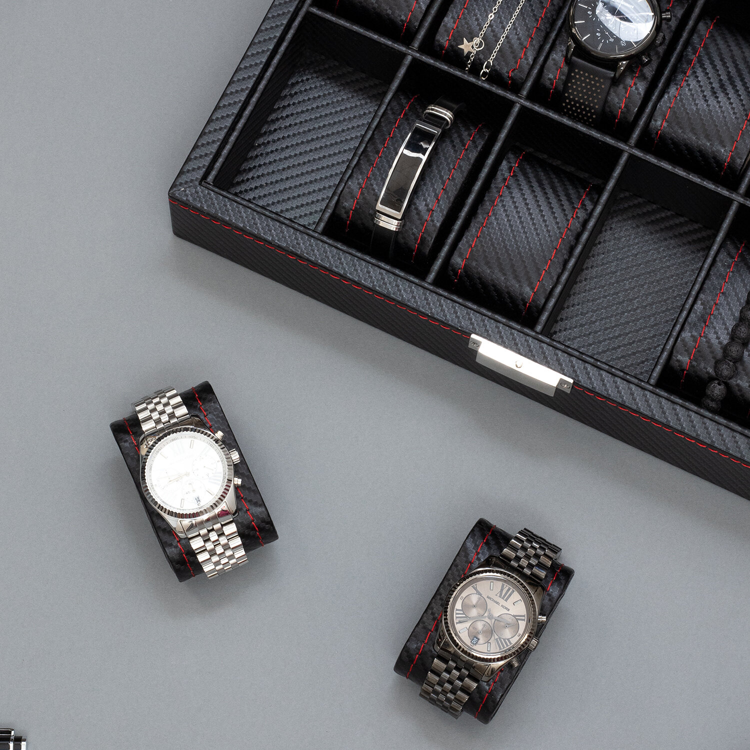 10 цен на Шкатулка для хранения 12 часов CloxBox MTW90 Экокожа, черная с красной строчкой