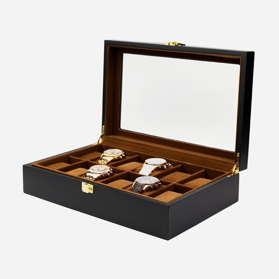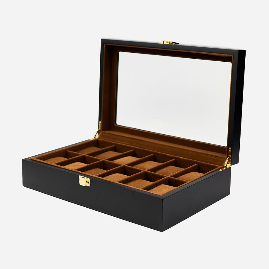 Отзывы на Шкатулка для хранения 12 часов CloxBox W42-K Черная, матовый лак