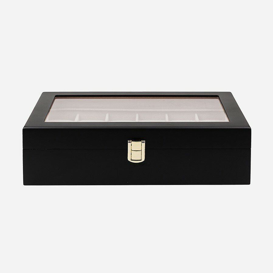 Шкатулка для часов из двенадцати секций для хранения CloxBox W74 Черная, матовый лак информация: