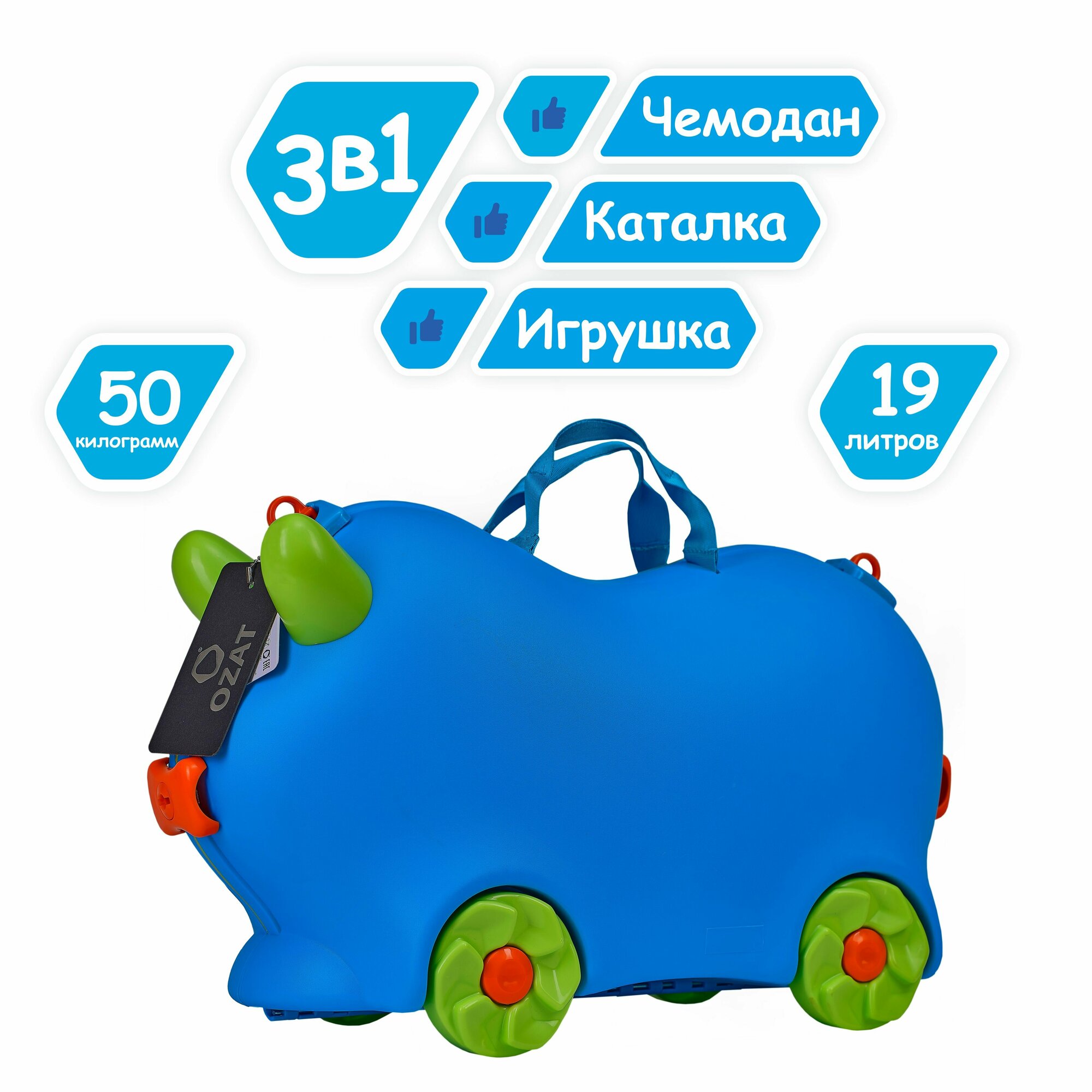 Чемодан-каталка-игрушка OZAT синий, с колесами, без декора информация: