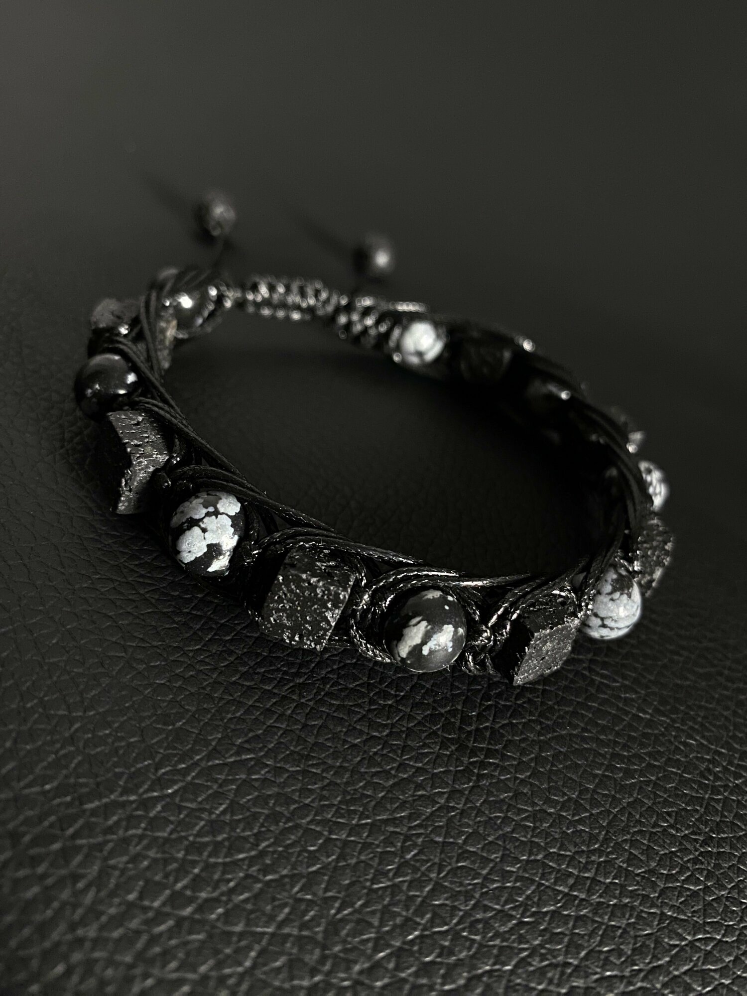 Браслет из натуральных камней снежный обсидиан и лава / Браслет мужской / женский плетеный / в подарок мужчине парню-15-17см информация: