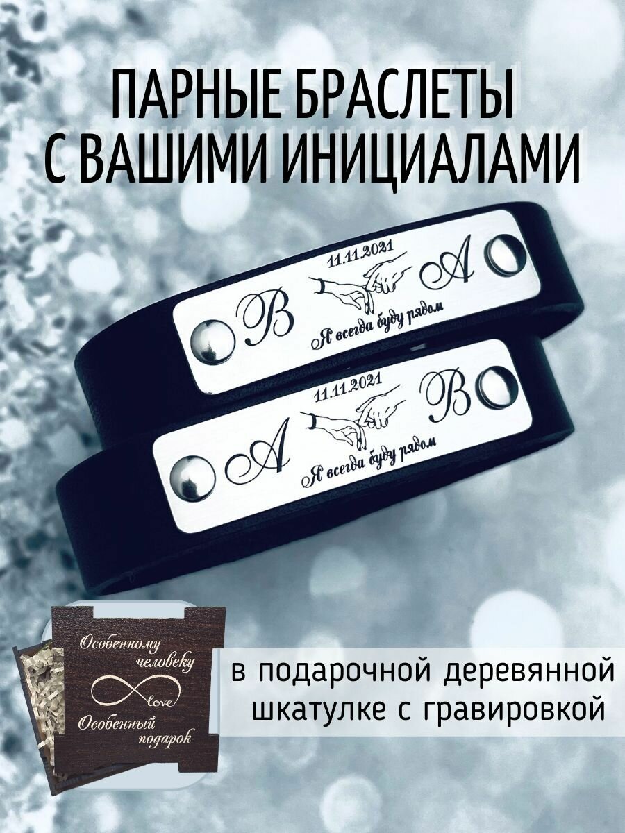 Парные браслеты подарок мужу, подарок жене, любимому "Браслеты с индивидуальной гравировкой Hands" информация: