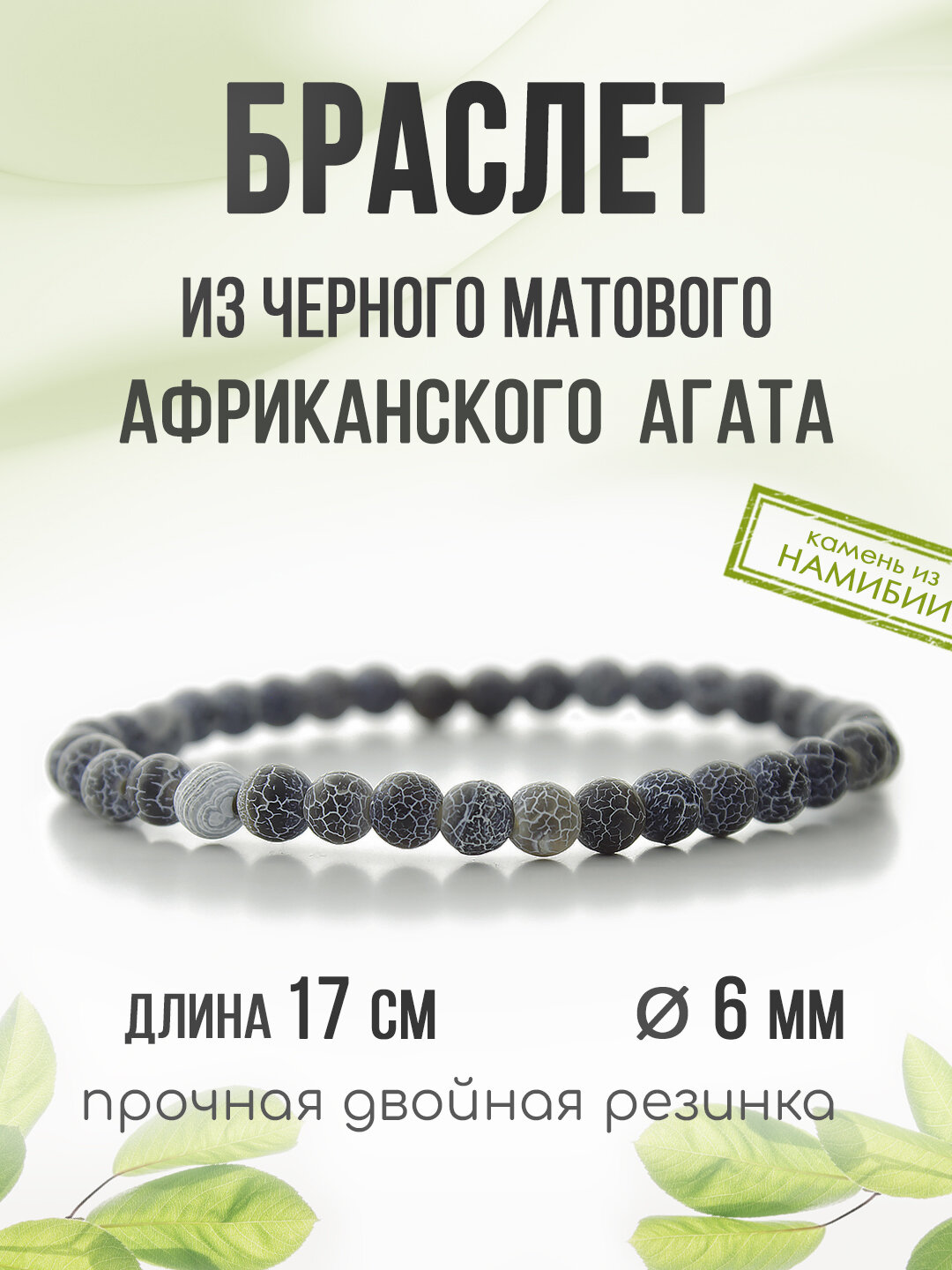 Агат африканский черный матовый 6мм, браслет "Классика" длина 17см информация: