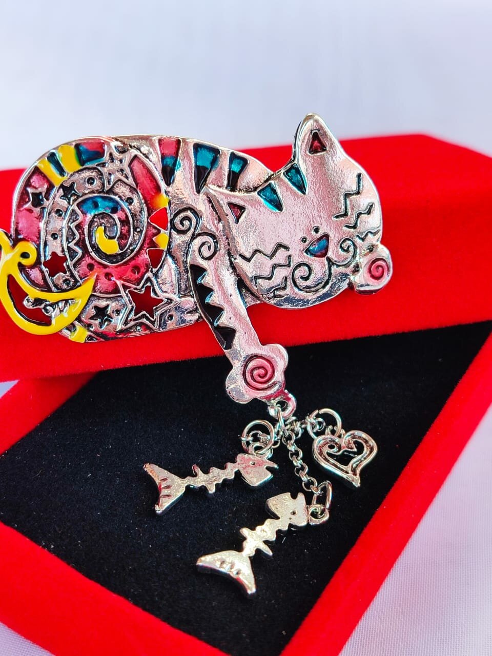 Брошь «Кот» сказочный, цветная в серебре информация: