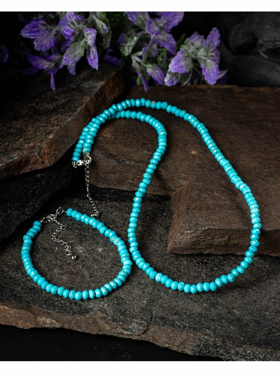 10 цен на Колье ожерелье 55+5 см из натуральной бирюзы / бусы из натуральных камней женские на шею