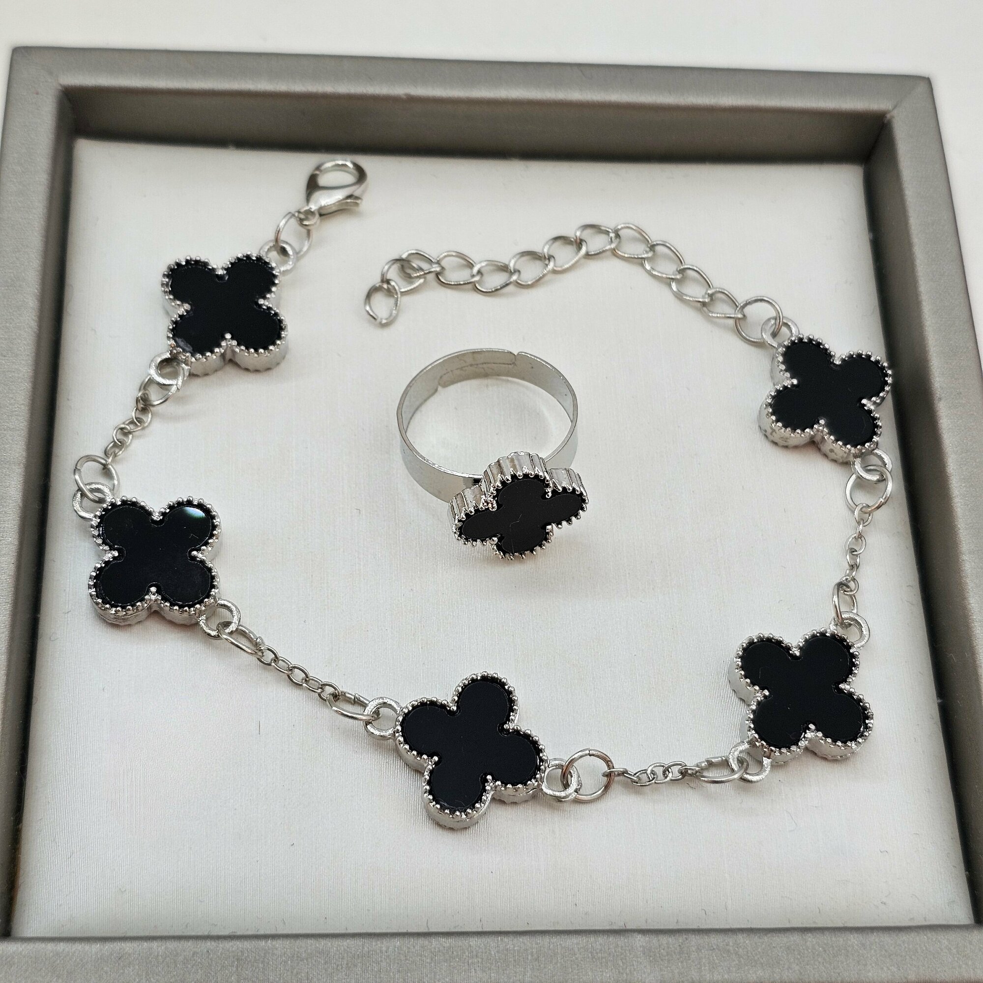 Кольцо женское бижутерия с черным камнемКлевер безразмерное регулируемое для девочек и девушек, стильные трендовые украшения на новый год информация: