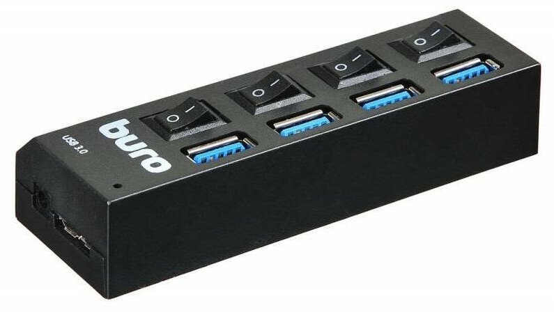 USB-концентратор Buro BU-HUB4-U3.0-L, разъемов: 4, черный