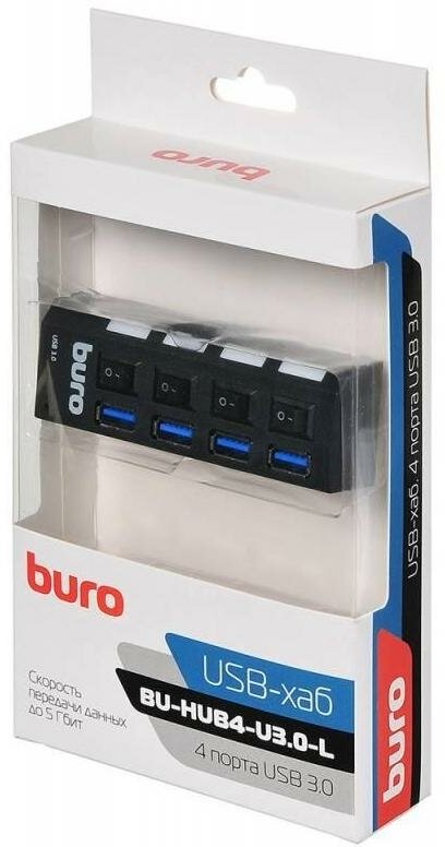 Разветвитель USB 3.0 Buro BU-HUB4-U3.0-L черный информация: