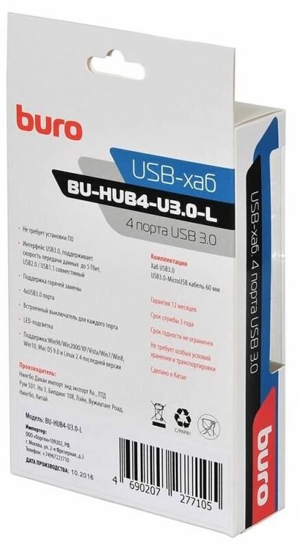 Концентратор BURO BU-HUB4-U3.0-L (BU-HUB4-U3.0-L)