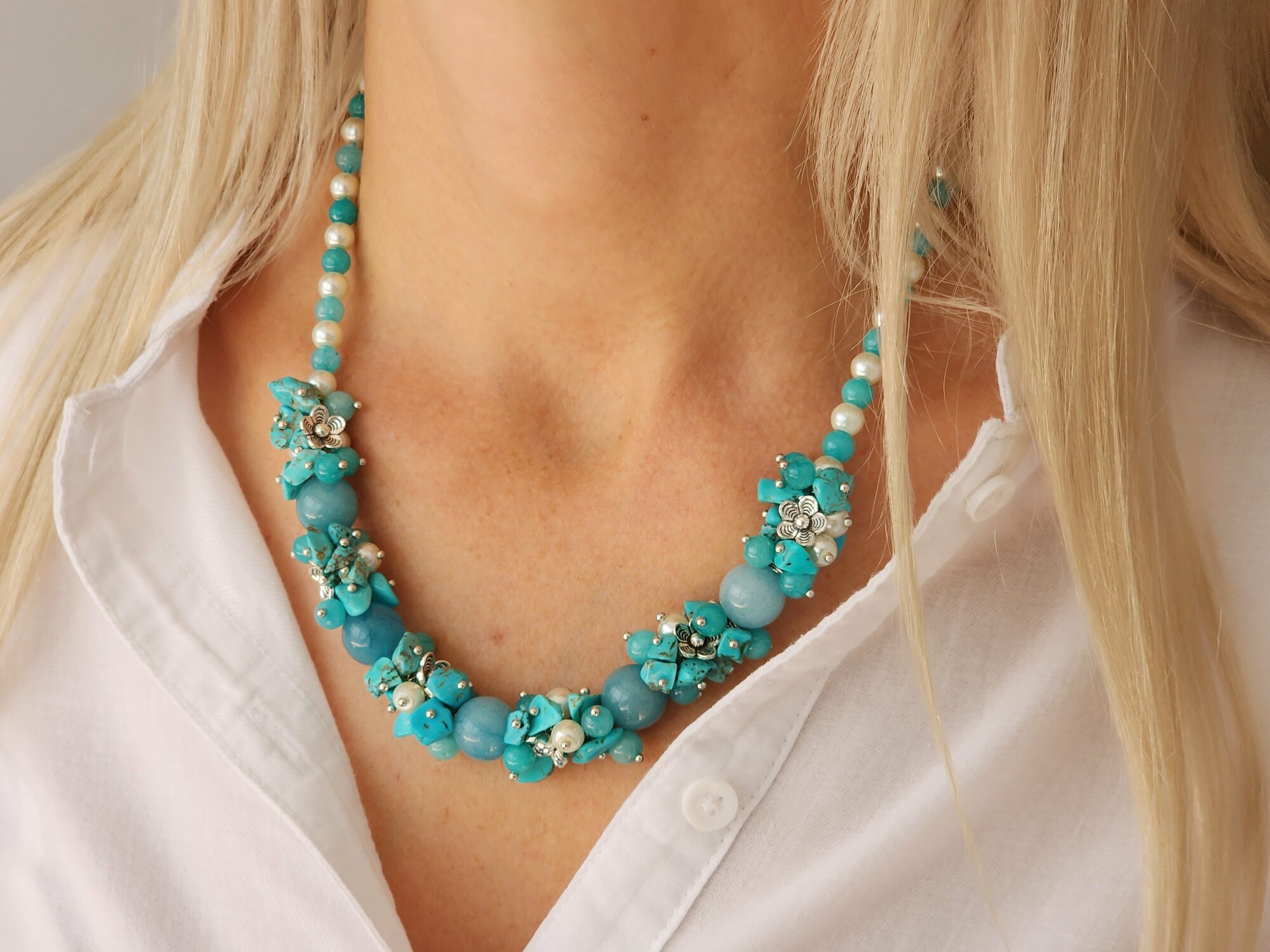 10 цен на Комплект украшений (серьги, браслет, колье) с бирюзой