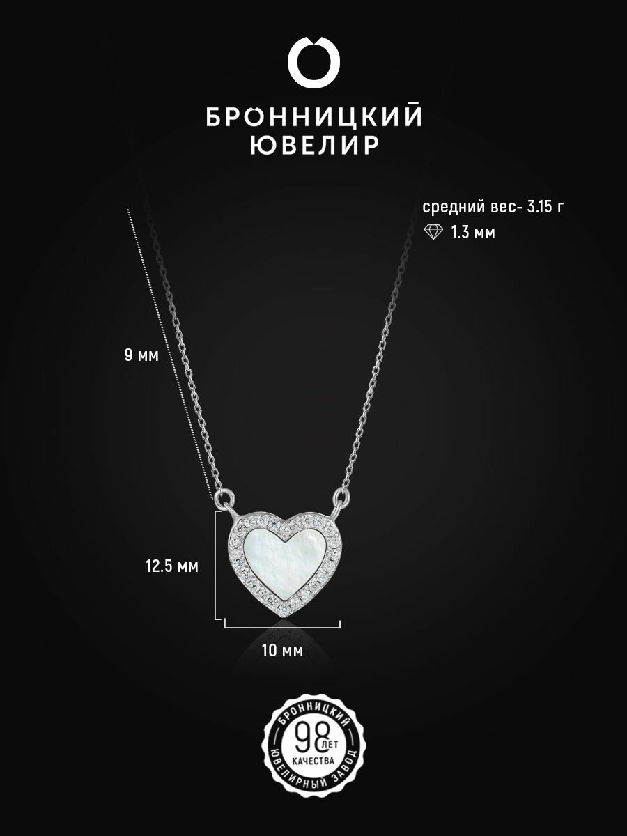 Серебряное колье с фианитами и перламутром женское 925 пробы, 38-46 информация: