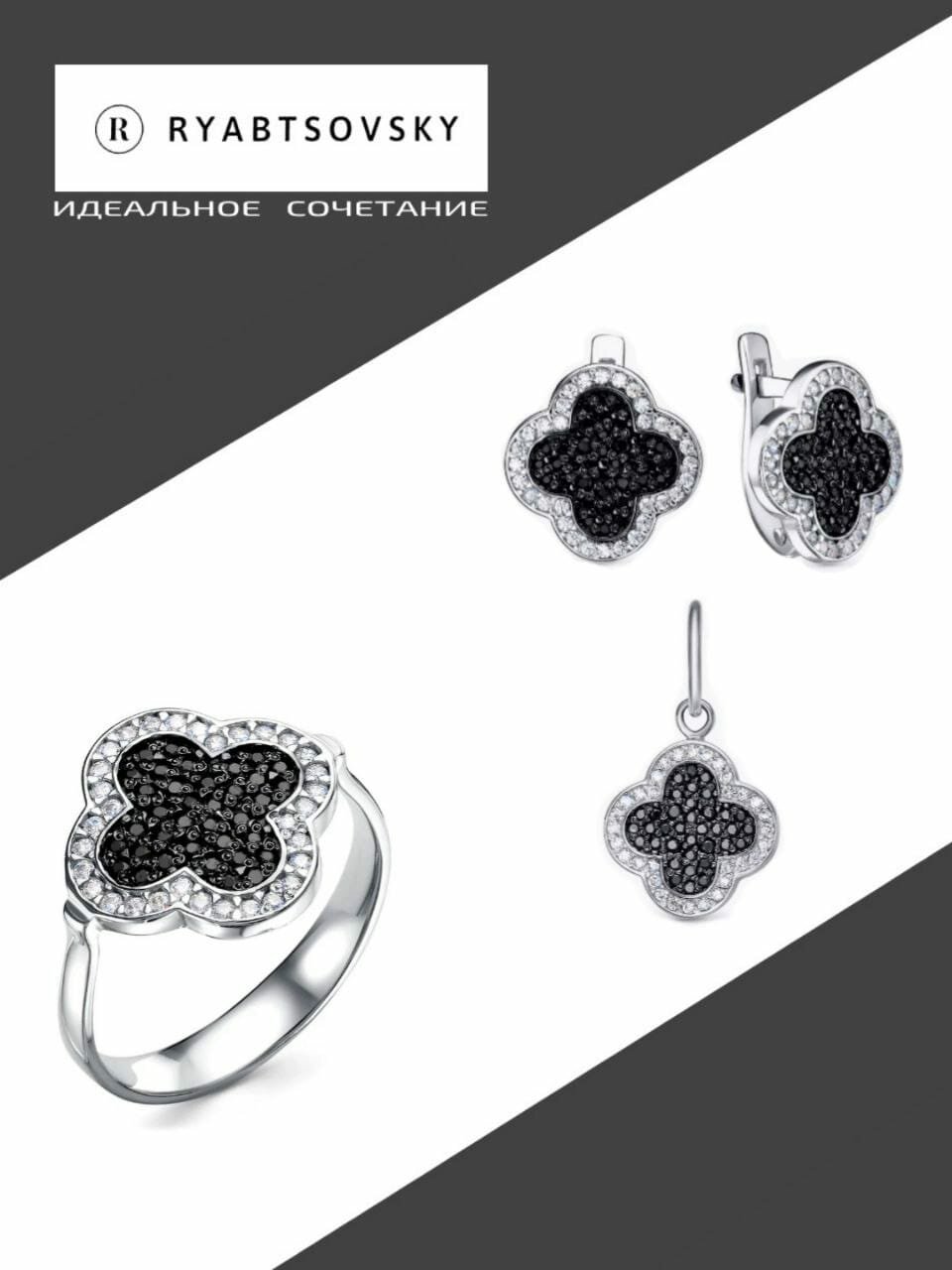 Отзывы на Гарнитур ювелирный "Клевер". Комплект серьги, кольцо, подвеска, серебро с фианитами