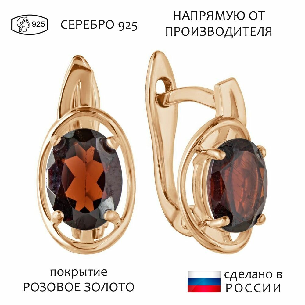 10 цен на Серебряные серьги с натуральным гранатом - коллекция Фрейя / покрытие Розовое Золото