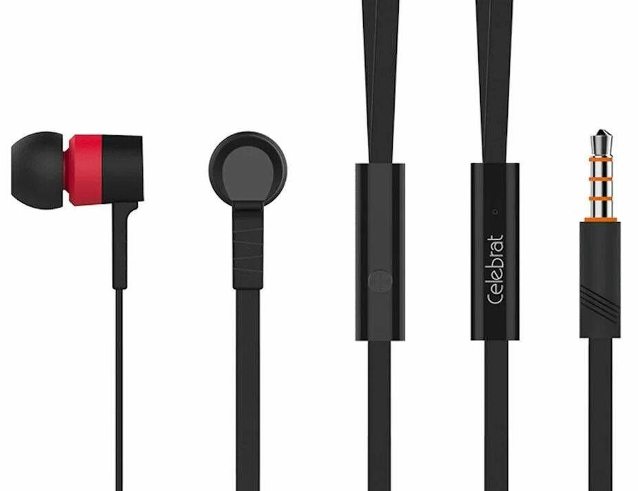 Проводные наушники с микрофоном внутриканальные Celebrat D2, 3.5 Jack, красный, 1 шт.