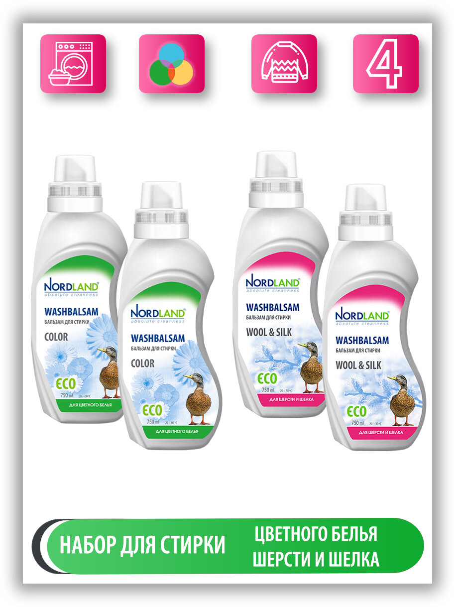 Отзывы на Набор для стирки шерсти и шелка, цветного белья NORDLAND 750 мл, 4 шт.