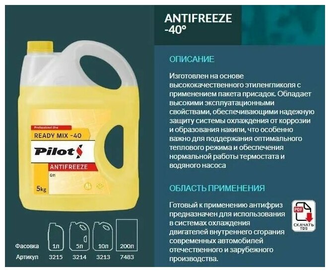 10 цен на PILOTS 3214 PILOTS Antifreeze YELLOW LINE -40 5 кг