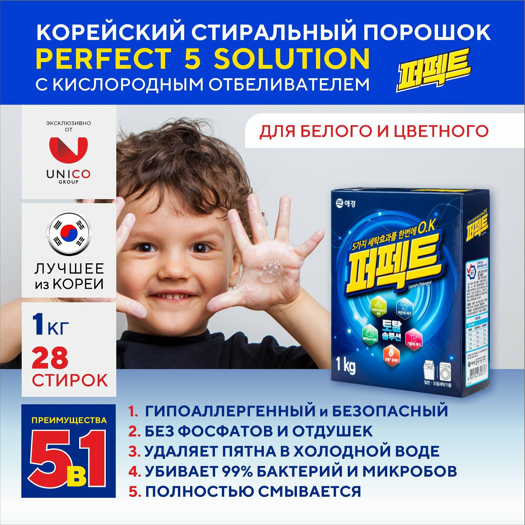 Стиральный порошок Kerasys Perfect 6 Solution для белого и цветного белья 1 кг