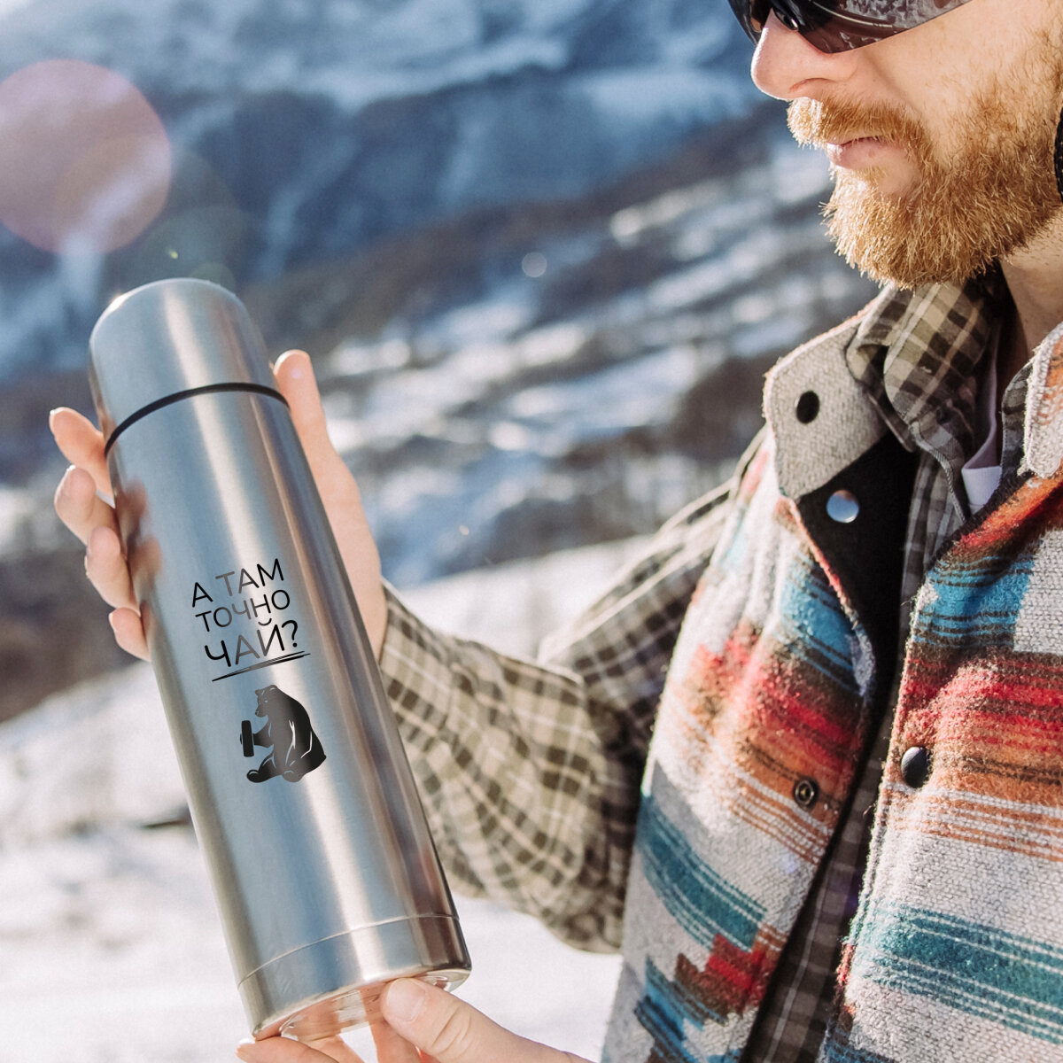 Термос для чая и кофе с гравировкой Арктика 1 литр с чашкой информация: