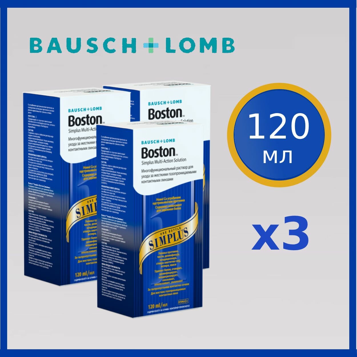 Раствор для жестких газопроницаемых контактных линз BAUSCH+LOMB Boston SIMPLUS 120 мл х3, с контейнером информация: