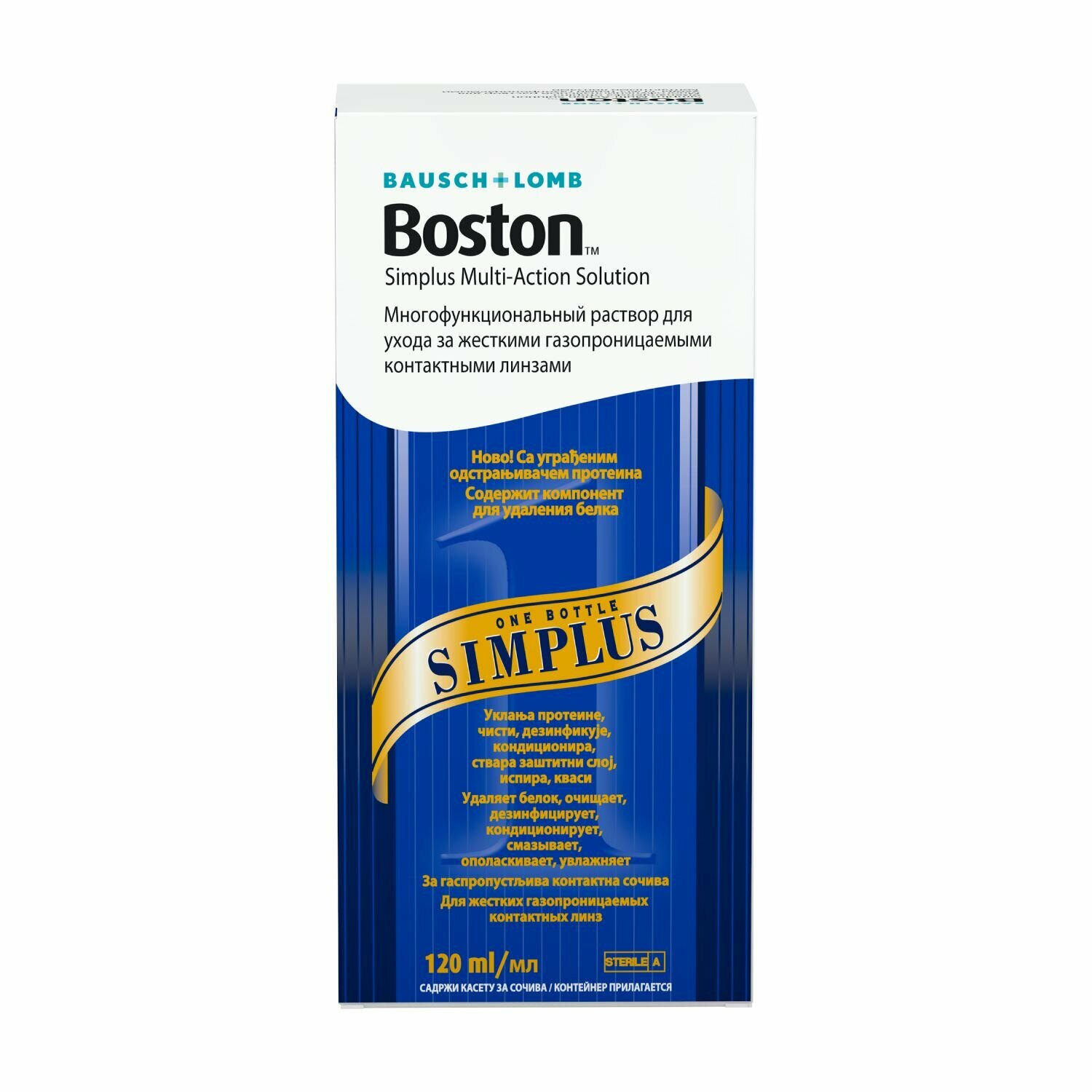 Раствор Bausch & Lomb Boston Simplus, для жестких контактных линз c контейнером, 120 мл