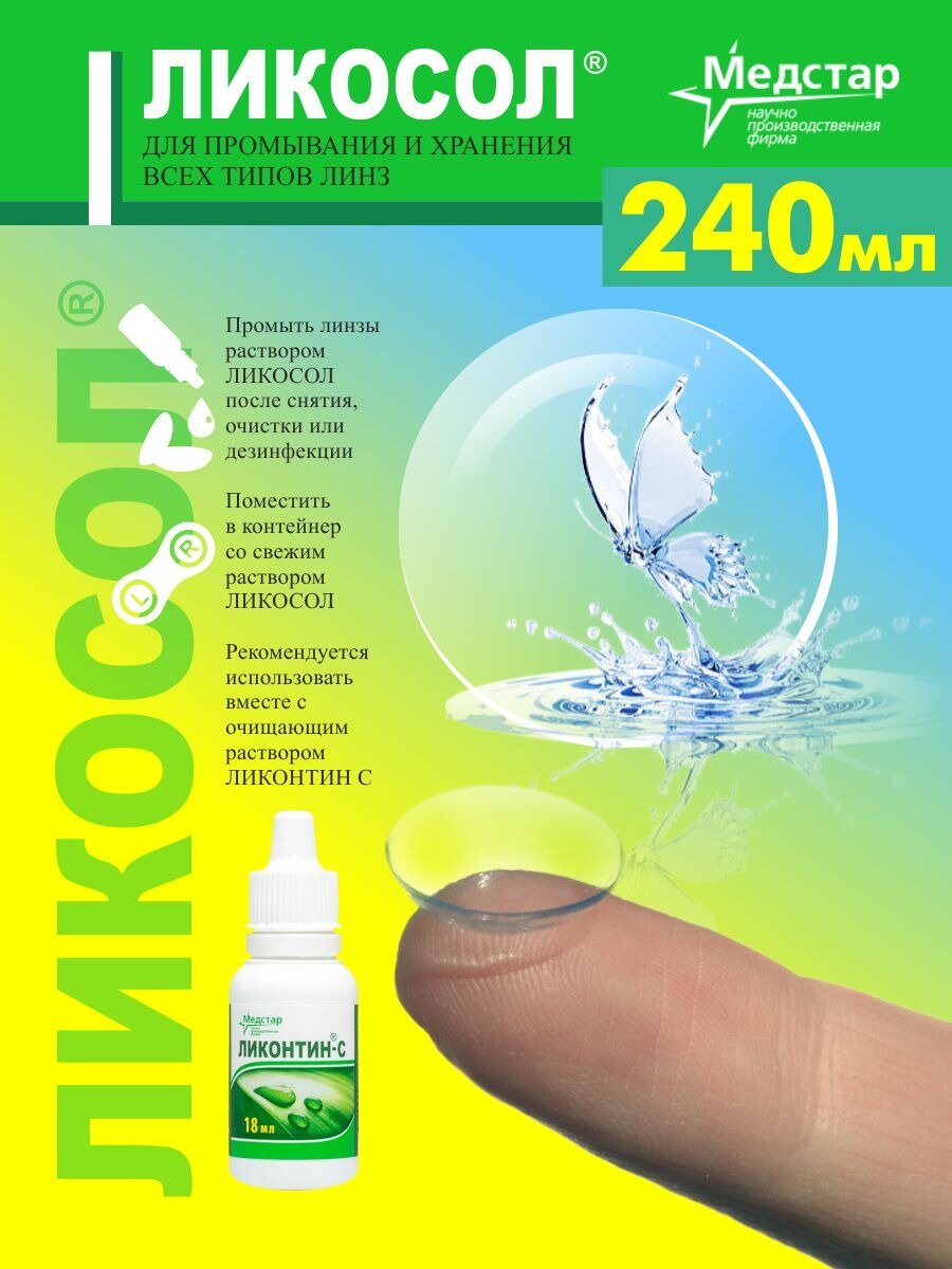 Раствор для контактных линз Ликосол, Медстар 240 мл набор 2 штуки информация: