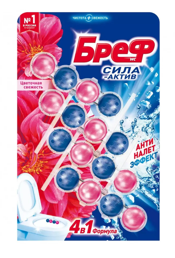 Туалетный блок «Бреф» Сила-Актив Цветочная свежесть в виде блока очистителя для унитаза, 4х50 г 850 ₽