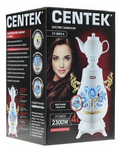 Самовар Centek CT-0092 A (белый+рисунок+золото), 4.0л, 2300Вт, поддерж.t + LED индикатор, керам зав.