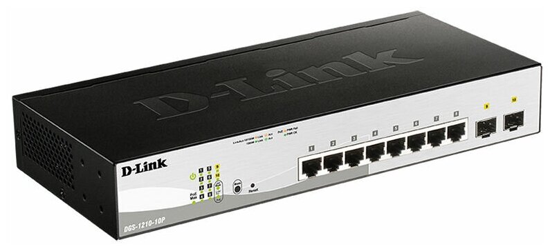Коммутатор D-Link DGS-1210-10P/F1A, L2 Smart Switch with 8 10/100/1000Base-T ports and 2 1000Base-X SFP ports (8 PoE ports 802.3af/802.3at (30 W), PoE Budget 78 W).16K Mac address, 802.3x Flow Control, 4K of 8 11 904 ₽