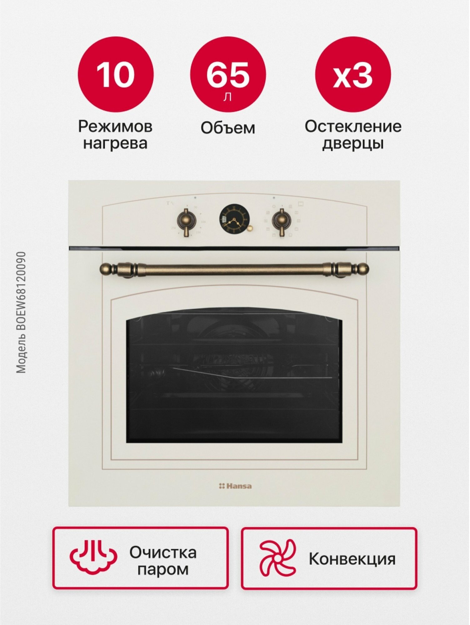 Духовой шкаф HANSA BOEW68120090 59.5x59.5x57.5 см цвет бежевый