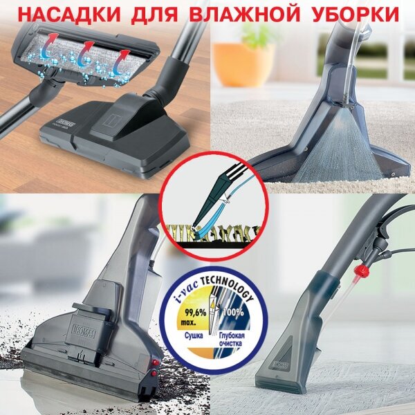 | Дополнительная информация | сумка для принадлежностей; емкость резервуара моющего средства 1.8л; радиус действия 12м; объем всасываемой воды в режиме сбора… жидкостей 2 литра; моющий концентрат для ковров ProTex 500 мл; фильтр-мешок на 6 литров ещёскрыть |