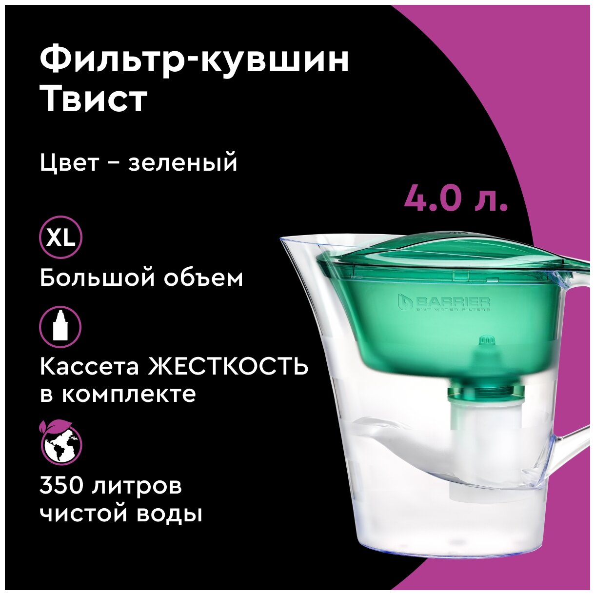 Кувшин-фильтр для очистки воды БАРЬЕР "Твист", 4 л, со сменной кассетой, зеленый, В172Р00 В комплекте: 1шт.