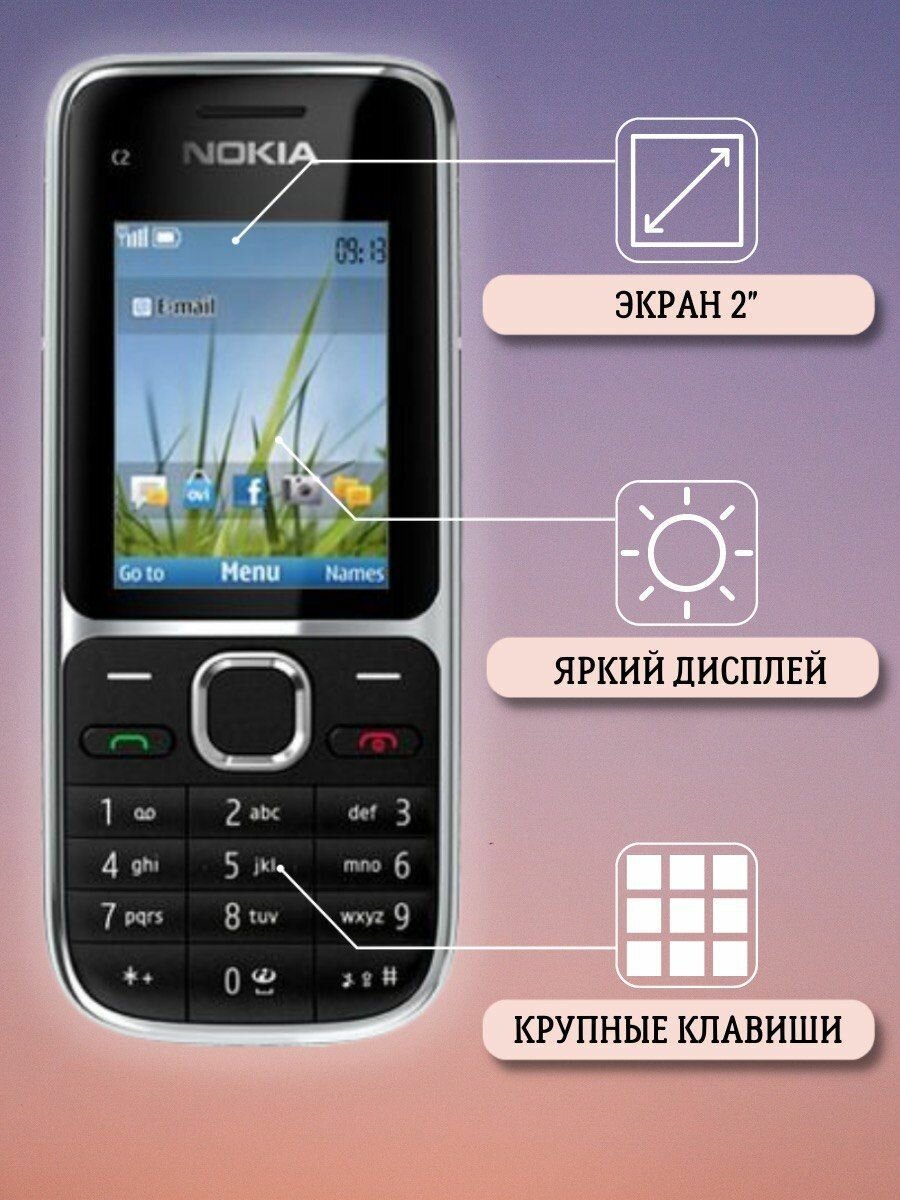 Кнопочный телефон Nokia c2-01 информация: