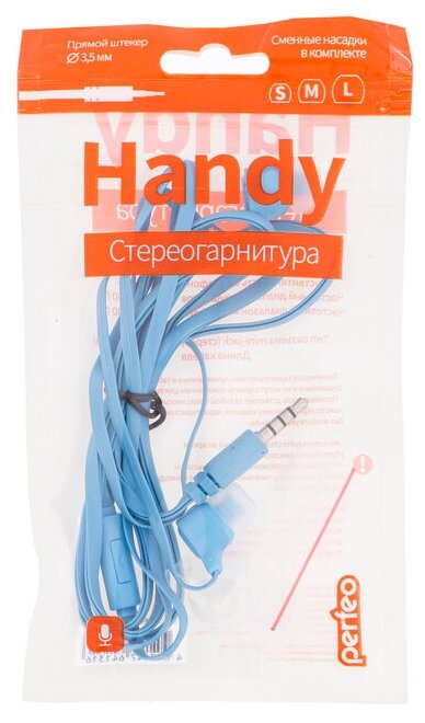 Perfeo Наушники наушники внутриканальные c микрофоном HANDY голубые PF-HND-AZR