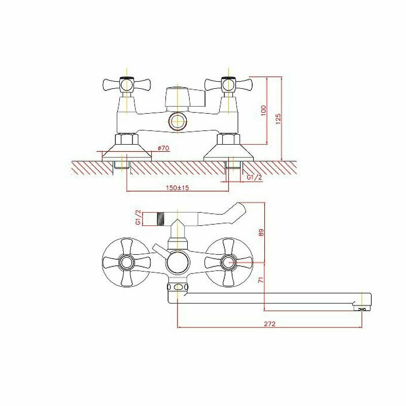 Смеситель на раковину настенный Эверест B46-350 с круглым поворотным изливом, кран-буксы 1/2", хром