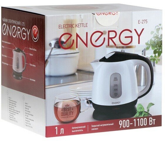 Energy Чайник электрический ENERGY E-275, пластик, 1 л, 1100 Вт, бело-чёрный