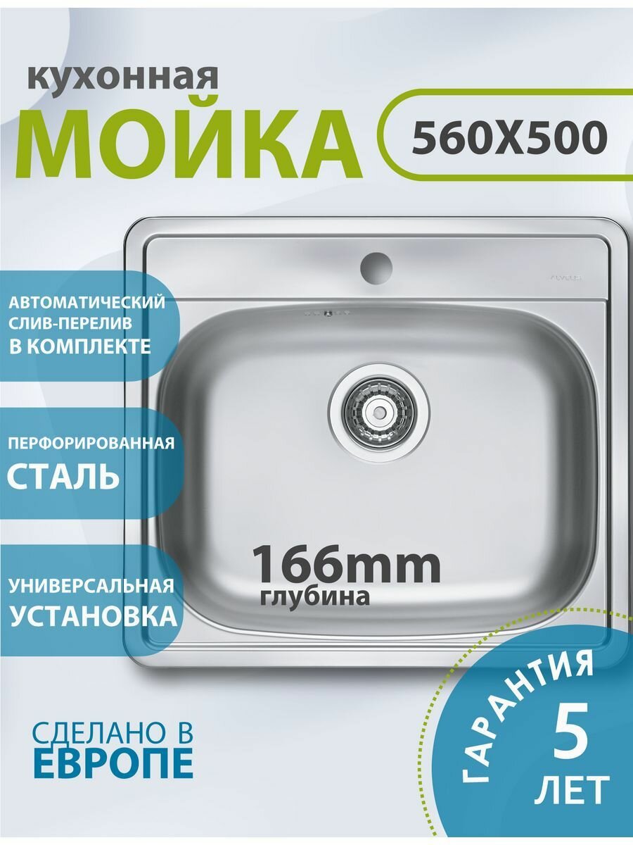 Кухонная мойка ALVEUS MORE 10 LEI-90 560X500 с сифоном 1103106 информация: