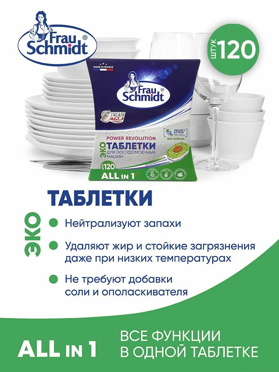 Frau Schmidt Таблетки для посудомоечных машин "Все в 1"в водорастворимой оболочке 120 таб. информация: