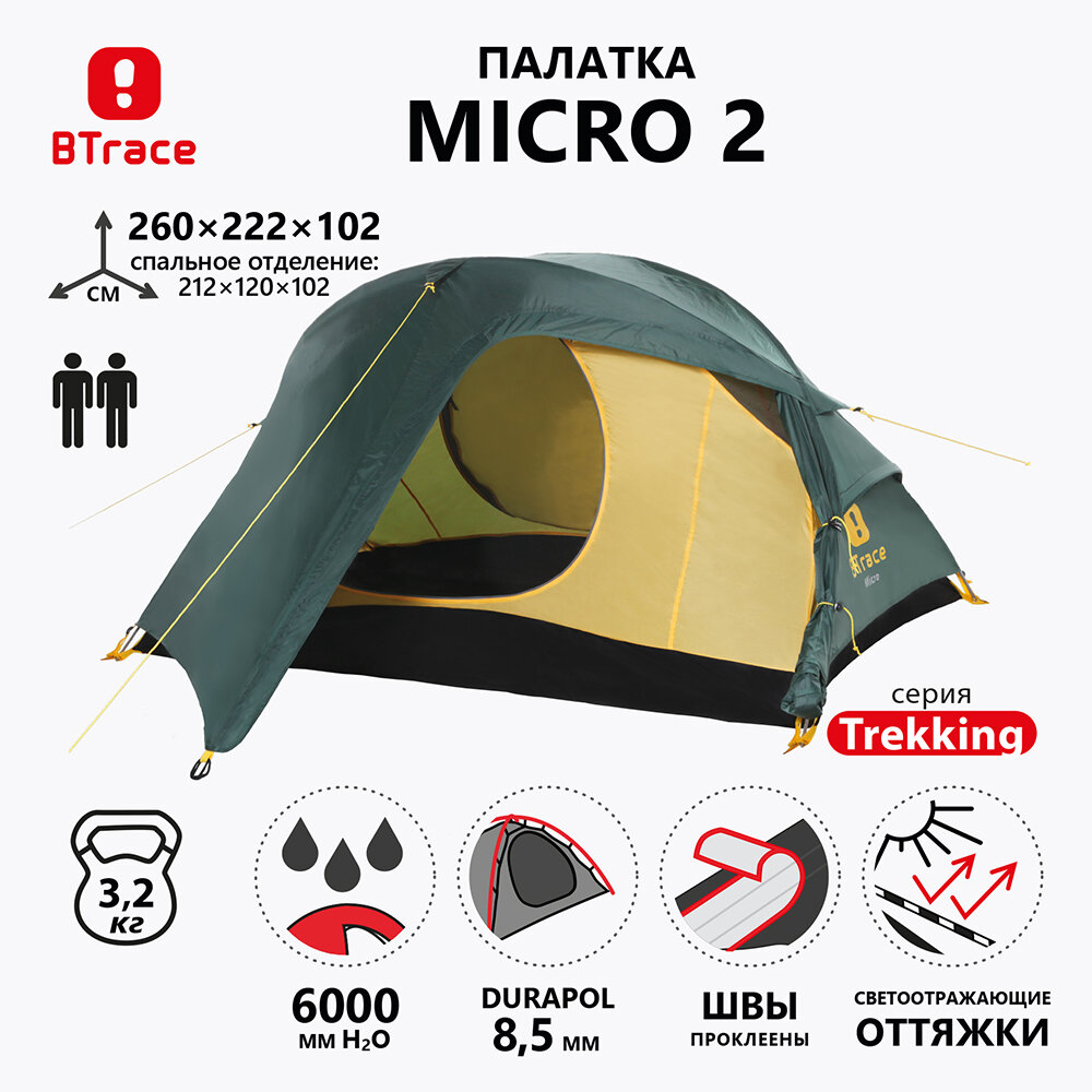 Палатка трекинговая двухместная Btrace Micro, зеленый