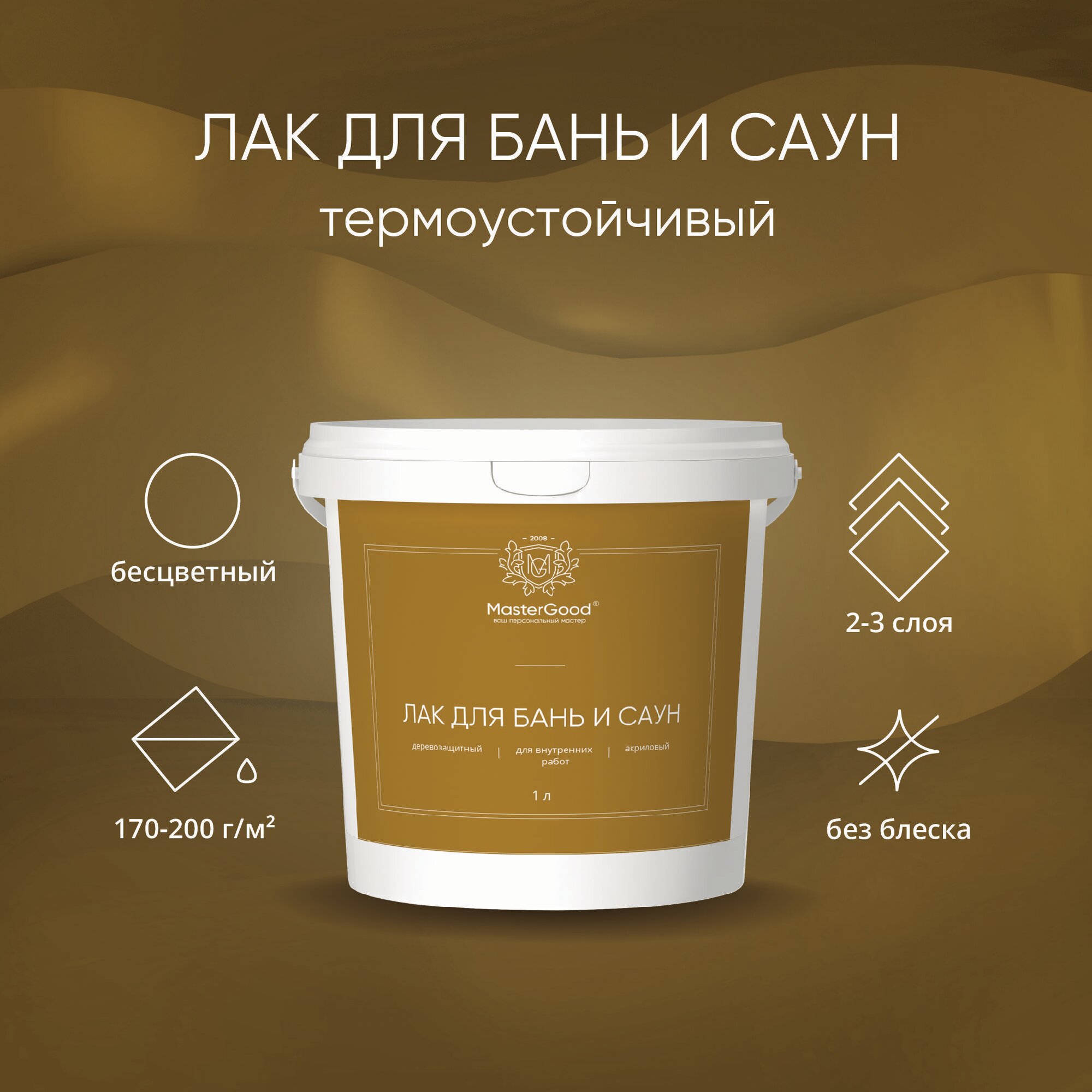 Лак защитно-декоративный акриловый Master Good/Мастергуд, для бань и саун, теромостойкий 1 л