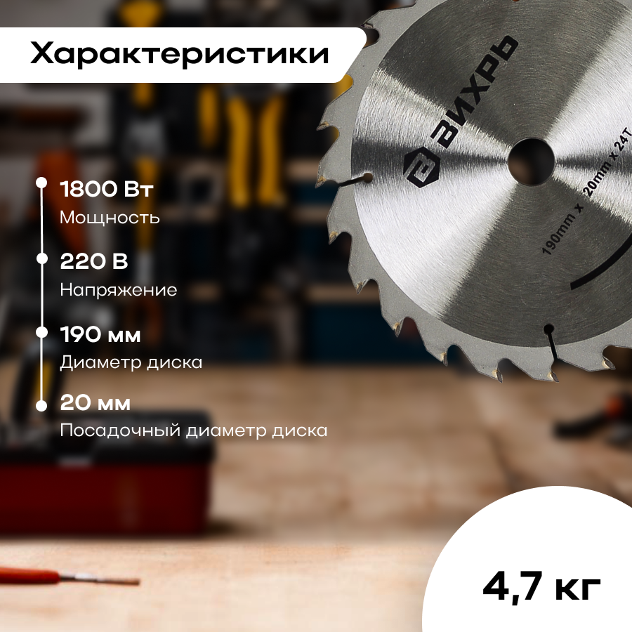 Пила дисковая Вихрь ДП-190/1800, 72/11/6