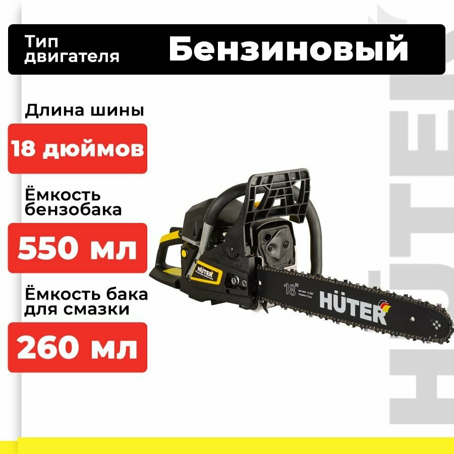 HUTER Бензопила Huter BS-52M, 2Т, 2.8 кВт, 3.8 л.с., 18", шаг 0.325", паз 1.5 мм, 72 зв.