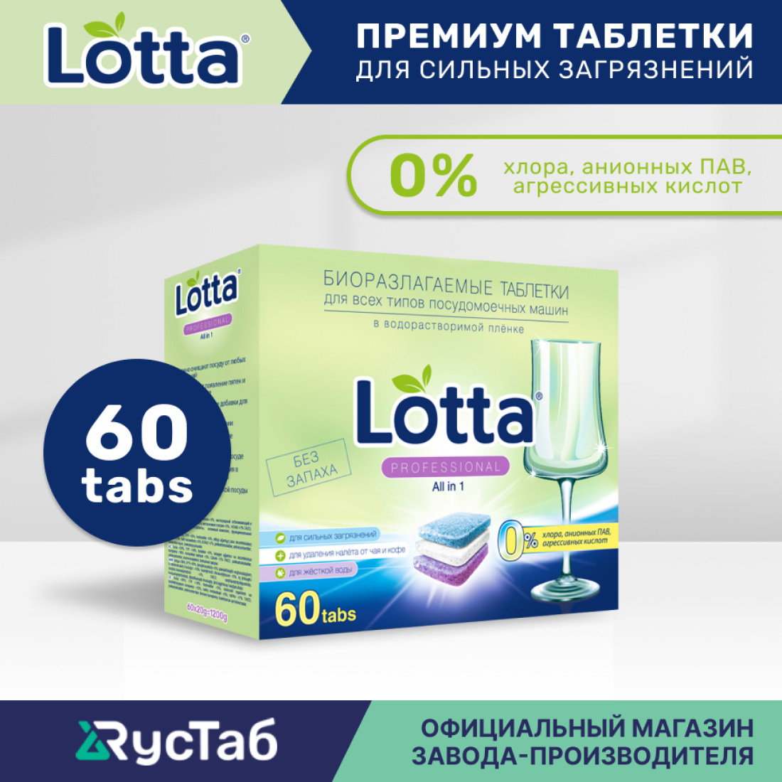 LOTTA Таблетки для ПММ Allin1 MEGA PACK растворимая 60 шт 4660002310758 1 406 ₽