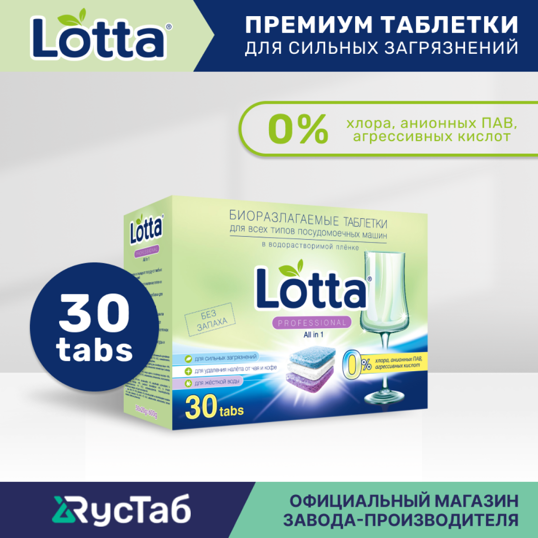 Таблетки для посудомоечной машины LOTTA All in 1 растворимая оболочка 30 шт. информация: