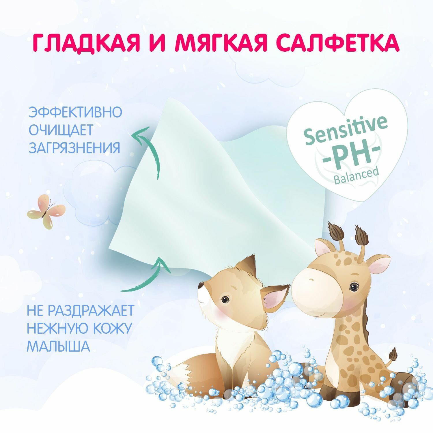 Влажные салфетки детские с крышкой 360 шт (120 шт х 3), солнце И луна информация: